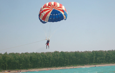 Para sailing, also known as parascending, it is a recreational activity where a person is towed behind a vehicle (usually a boat) while attached to a parachute. The parascender has little or no control over the parachute. The activity is primarily an amusement ride.